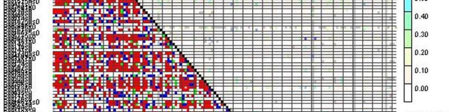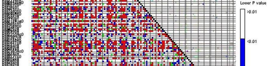 at two loci, the P-value in the lower right indicates the extent of linkage equilibrium; Level of significance is indicated by colors