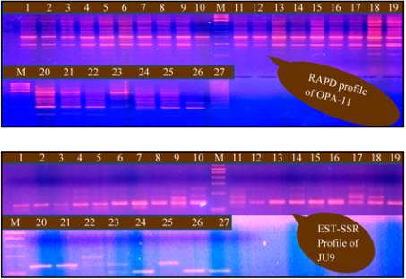Figure 1 A: RAPD profile for OPA-11 primer; B: EST-SSR