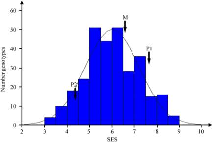 4 for Hasawi (P2), and 6 for the RILs (M), A value of 4 or