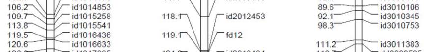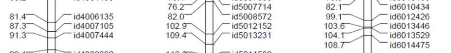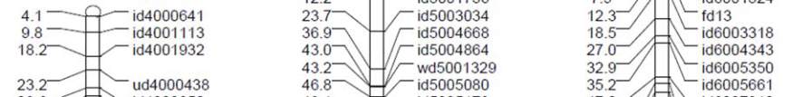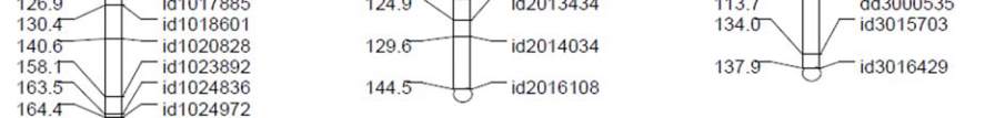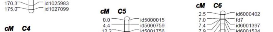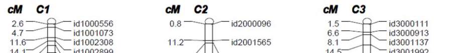 Note: Labels on the right of the chromosomes reveal marker names while the numbers on the left indicate SNP positions in cM