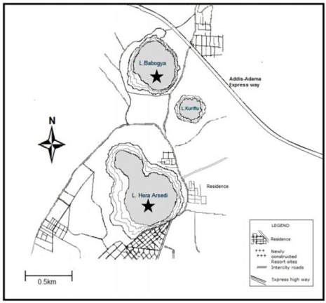Figure 1 Map showing location of three Bishoftu crater lakes in