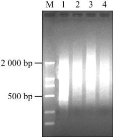 Note: M is the marker; Lane 1, 2, 3, 4 are the total RNA of