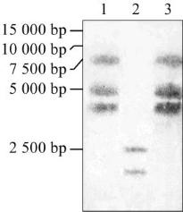 F3H homolog as the probe; 1: Genomic DNA of white series