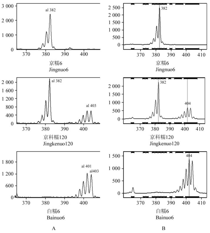 Note: A: The analysis result of GeneMapper v3.7; B: The analysis result of GeneMarker-BMSTC v1.0