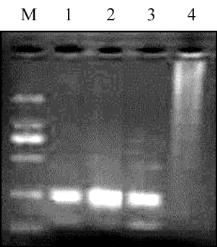 Note: M: DL2000 marker, 1~4 Taq polymerase: 0.5 U, 1.0 U,