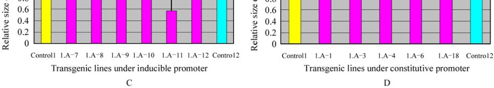 Note: The results showed that although the number of colonies developed on the transgenics under constitutive (C) and inducible (D)