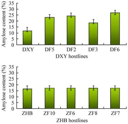 Figure 7 Amylose contents (AC) test result in transgenic lines